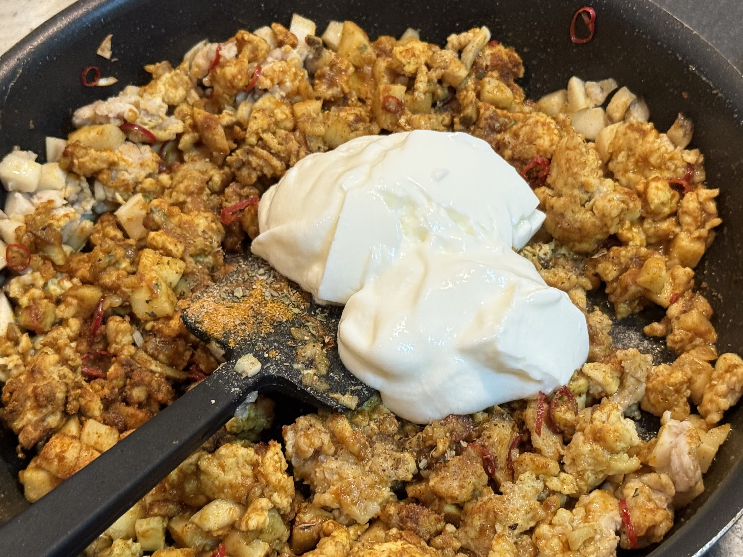 あとは…………ふとカレーが食べたくなったもののカレールーがなく、しかしカレー粉とヨーグルトがあったのでレシピサイトがささやくままにカレーっぽいものをつくりました。カレー粉とヨーグルトでカレーってできるんですね!
